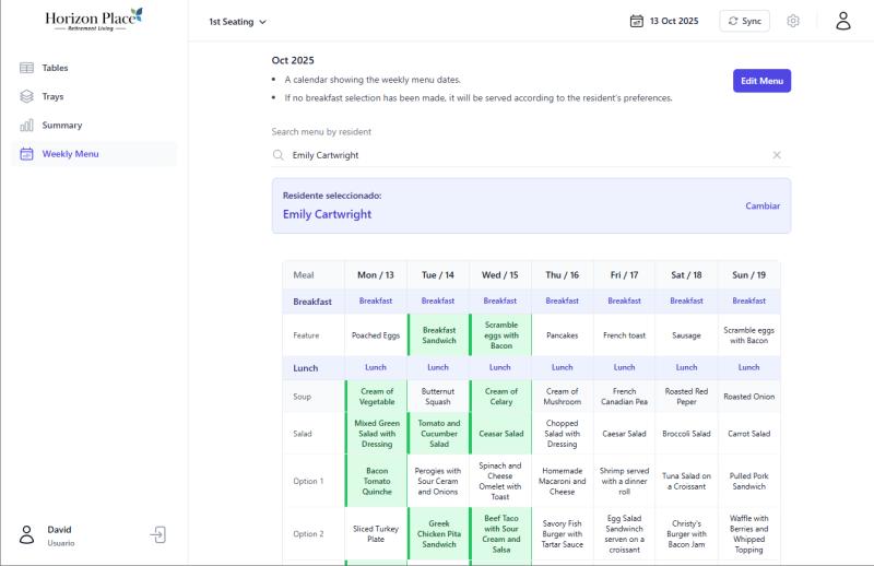 Built a dynamic menu system that allows staff to create and publish weekly menus, and residents to browse available meals by day.