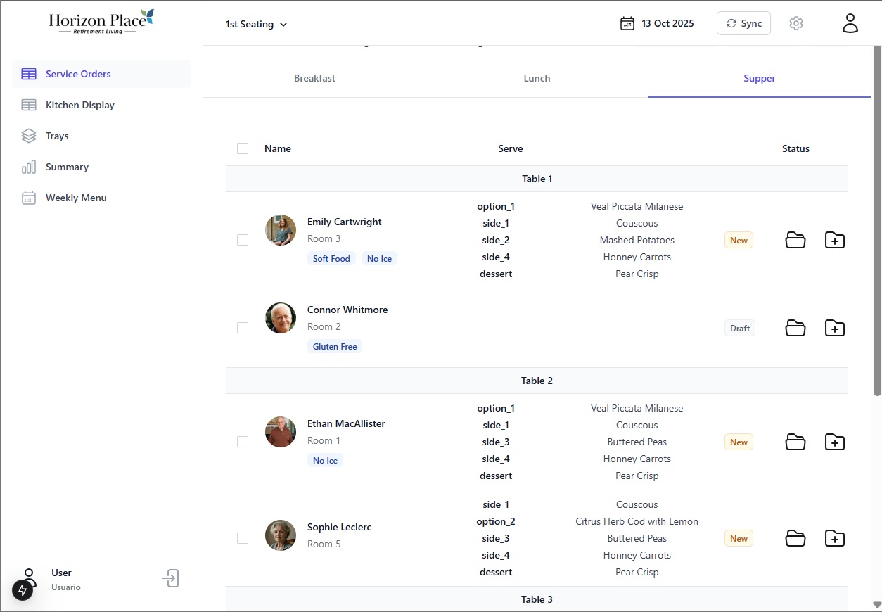 Residents have different dietary needs, restrictions, and preferences. The app lets each resident build a profile and place orders that respect their specific requirements.